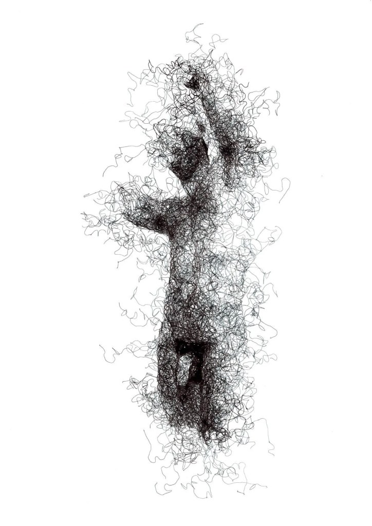 This anonymous model posed remotely. The picture is drawn using different tones of grey and black fountain pen ink.
